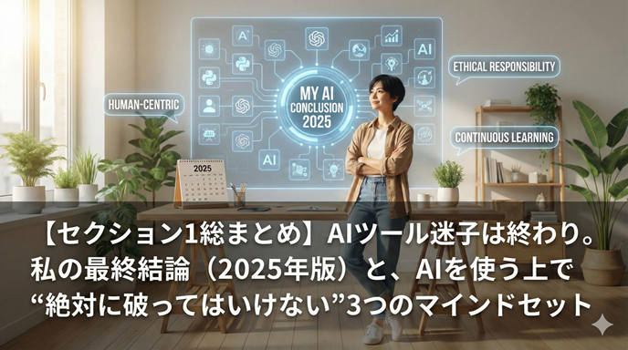【セクション1総まとめ】AIツール迷子は終わり。私の最終結論(2025年版)と、AIを使う上で“絶対に破ってはいけない”3つのマインドセット